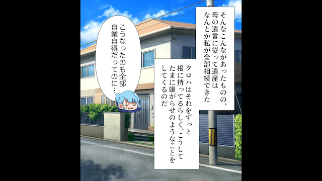 主人公が遺産をすべて相続すると知った妹は、主人公に嫌がらせをするようになったのでした。