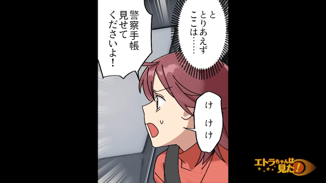 車から降りてきた男性たちは、私服警官を名乗りました。 昨日と同じ状況に陥り恐怖を感じた主人公は、警察手帳の提示を求めます。