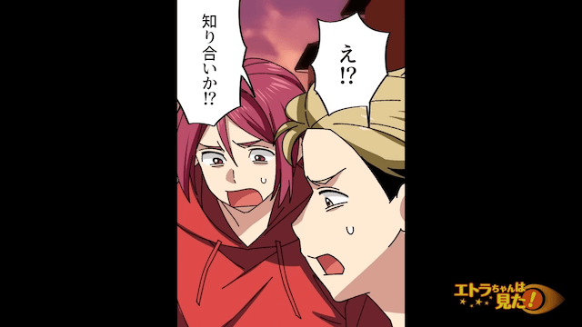 主人公が投げた石は走り去る人物に命中し、倒れたところを男性たちが取り押さえました。 するとその人物が友人だと判明し、主人公は驚愕します。