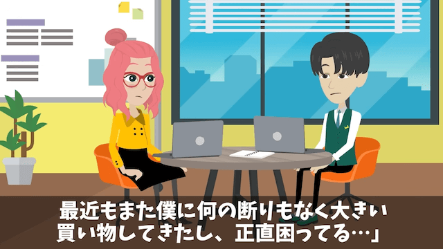 弟の会社の社長が気遣ってくれたことで弟が主人公の営業担当になり、主人公と弟は公私ともに助け合う関係になっていました。 そして仕事の話を終えた主人公が弟に彼女のことを聞くと、弟は彼女の金遣いの荒さに困っていると話して…。