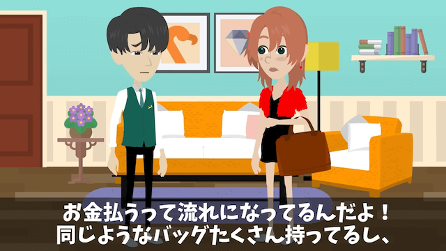 勝手にバッグを購入した彼女を弟が責めるも、彼女は言い訳をして…。