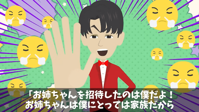 義両親に「この場から消えなさい!」と言われ、帰ろうと決めた主人公。 するとそのとき、弟がやってきて「お姉ちゃんが来たことを悪く言わないで!」と庇ってくれたのでした。