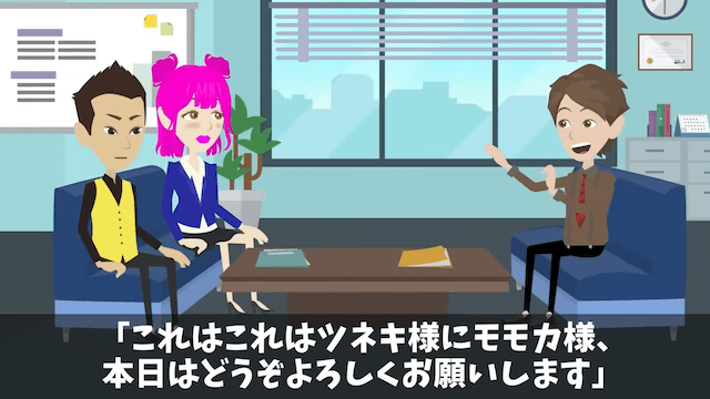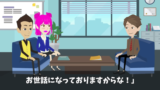 長い付き合いのある大口取引先との最終調整があり、仕事へ向かった義両親。 商談が始まり、義両親と取引先の担当者は挨拶を交わすのでした。