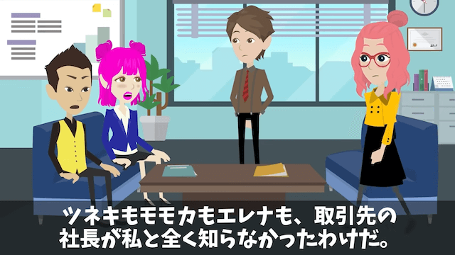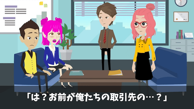 担当者が「弊社は御社とは対等になれない底辺貧乏企業でございますから」と告げると、そこに主人公が登場。 実は義両親の会社の大口取引先は、主人公が社長をしている会社だったのです。