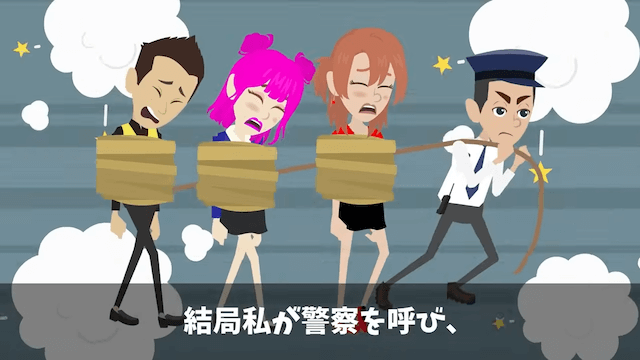 義両親と弟の彼女は懲りずに主人公たちにすがってきましたが、主人公が呼んだ警察にあっけなく連行されてしまいます。 そして義両親たちに粘着されることがなくなった主人公と弟は、楽しい毎日を過ごしたのでした。