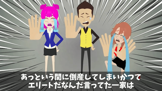 その後も次々と契約を切られた義両親の会社は、あっという間に倒産。 義両親たちは極貧生活へと突入しますが、プライドのせいで生活水準を落とせず…。