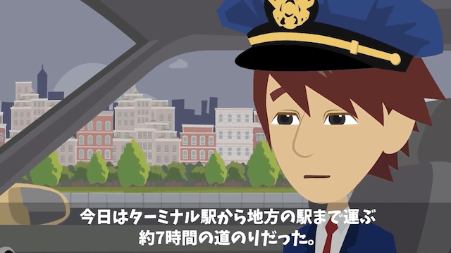 今日はターミナル駅から地方の駅まで客を運ぶ約7時間の道のりで…。