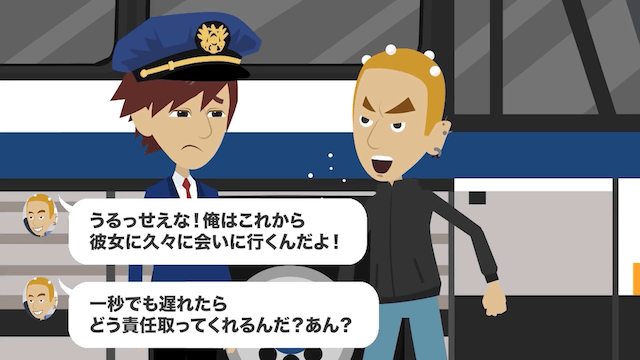 今回は『高速バスで…男が「運転手がトイレ休憩なんてサボりだ!」と乗車代金の返金を求めてきた話』を紹介します。 バスの乗降口で仁王立ちし、主人公を待ち構えていた男性客。 それを見た主人公は「うわ〜今度はなんだよ…」とうんざりして…。