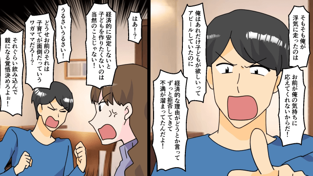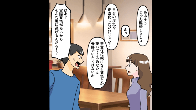 SNSで夫と浮気相手の仲睦まじい写真を発見した主人公は、夫に浮気について問い詰めました。 すると夫が浮気を認めて開き直り、あろうことか主人公のせいにしてきたため、主人公は夫に離婚を突きつけたのです。