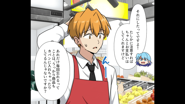 今回は『「ごめーんうっかりしちゃって!」セルフレジで会計をせずに出て行こうと企んだ女の末路』を紹介します。 スーパーで買い物をするたびに会計を忘れてそのまま外に出ようとする女性客。 主人公が注意すると女性客は謝罪してくれますが、あまりに回数が多いため、従業員は女性客のことを不審に思うようになって…。