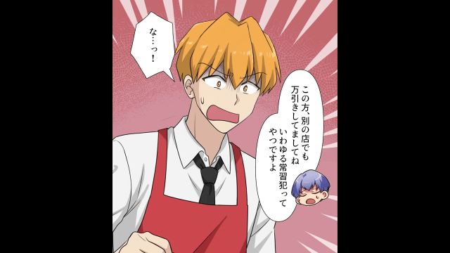 主人公が警察を呼ぶと言うと、女性客は急に慌て出して「警察はやめて、やめてよ!」とすがってきました。 しかし従業員がすでに警察を呼んでおり、女性客が万引きの常習犯だということが明らかになったのです。