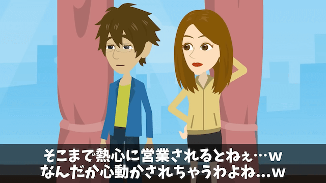 今回は『購入予約済みのタワマン最上階を勝手にキャンセルした営業マンの末路』を紹介します。 タワーマンションの最上階に住むメリットを熱心に説明する営業マン。 そして「ぜひとも、この機会にご検討ください!」と言われた主人公夫婦は…。