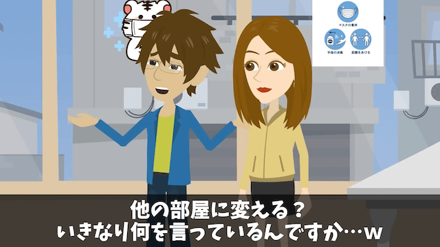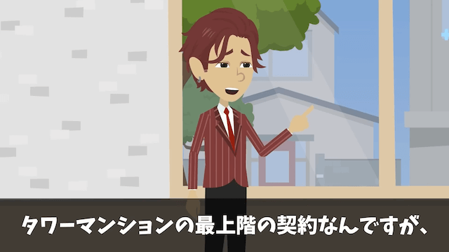 念願のタワーマンションの最上階の部屋を購入し、着々と引越しの準備を進めていた主人公夫婦。 しかし引越しの前日、営業マンに部屋の変更を勧められ、主人公は困惑するのでした。