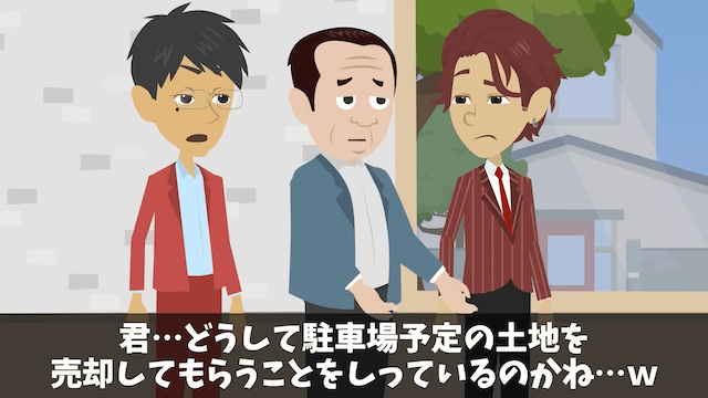 今回は『購入予約済みのタワマン最上階を勝手にキャンセルした営業マンの末路』を紹介します。 見下すような態度をとり続ける営業マンに「じゃあ俺も駐車場予定の土地は販売キャンセルで」と伝えた主人公。 それを聞いた営業マンは「駐車場予定の土地?」と困惑して…。
