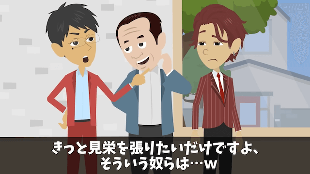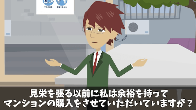 主人公の言葉に社長と社員は一瞬青ざめますが、すぐに主人公の負け惜しみだと考えました。 そして社員は、最上階の部屋を希望している主人公夫婦を見栄っ張りだとバカにしたのです。