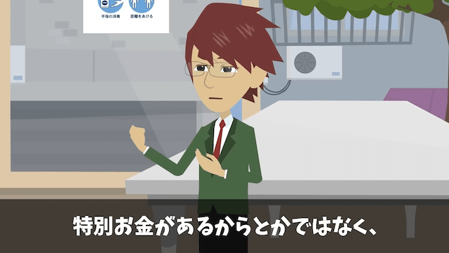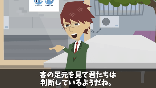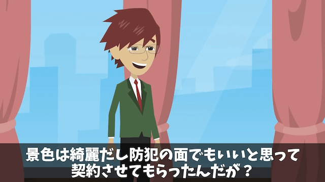 最上階の部屋を購入した男性の登場に驚き、慌てて謝罪する社員。 すると男性は社長たちの客の足元を見て判断する売り方に怒り、最上階の部屋を購入した理由を話し出して…。