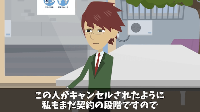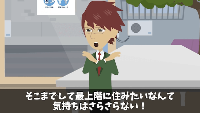主人公夫婦が購入予定だったことを知らず、最上階の部屋の契約をしていた男性。 しかし男性は主人公夫婦から奪ってまで購入したい気持ちはないと言い、契約をキャンセルすることにしたのでした。