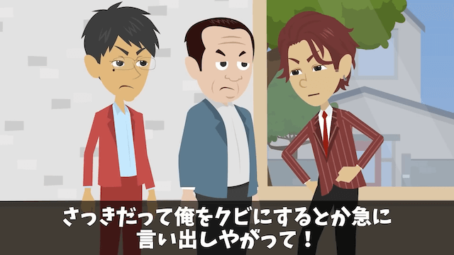 「せいぜい頑張ってくださいね」と社長たちに伝え、妻と一緒にその場から去った主人公。 その後、社長はすべての責任を営業マンと社員に押しつけようとし、営業マンは「俺からこんな会社をやめてやるよ!」と怒ったのでした。