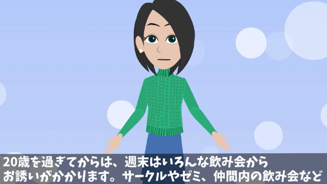 今回は『飲み会に毎回遅刻して「途中参加だからお金払わない!」と食い逃げする女の末路』を紹介します。 楽しいキャンパスライフを送る大学3年生の主人公は、20歳になってから、週末はいろいろな飲み会に誘われていました。 そして主人公は飲み会で初めて会う人とも交流の輪を広げていこうと思い、誘われた飲み会には積極的に参加していたのですが…。
