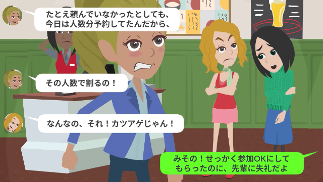 同級生は先輩に「料理もお酒も何も注文してないのに、なんで払わなきゃいけないの?」と言い、飲み会費の支払いを踏み倒そうとしていました。 そして同級生の言い分に驚いた主人公は「せっかく参加OKにしてもらったのに、先輩に失礼だよ」と注意したのですが…。