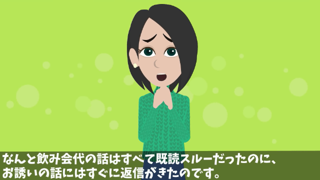 主人公は同級生への反撃の準備を進めつつも、同級生の心変わりを信じ、幹事たちにお金を返すよう説得し続けました。 しかし同級生はそんな主人公からのメッセージを無視し続け、飲み会への誘いにだけすぐに返信をしてきたのです。
