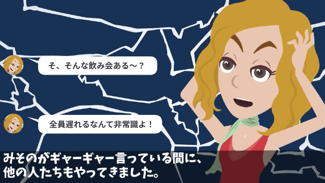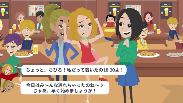 同級生は飲み会が18時開始だと思って18時半にやってきましたが、その日は同級生が一番最初に居酒屋にやってきたのでした。 そして主人公や他の参加者たちが同級生のように遅れてやってくると、怒り出す同級生を無視して飲み会が始まったのですが…。