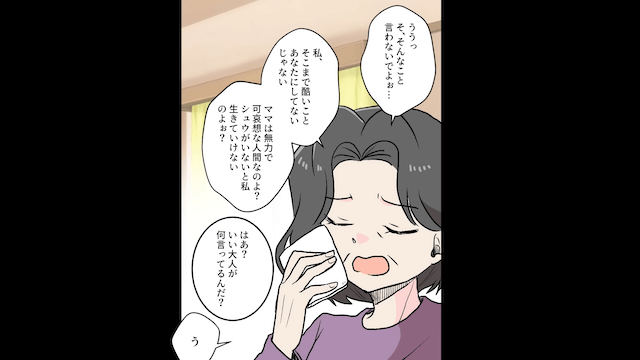すると義母は「ママは無力でかわいそうな人間なのよ?」と泣き出し…。