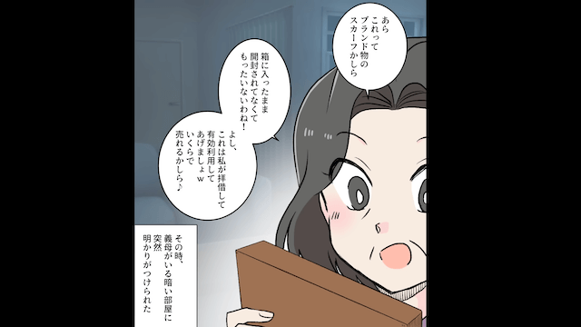 しかしその直後、隣の部屋にいた主人公がやってきて、義母を問い詰めたのでした。