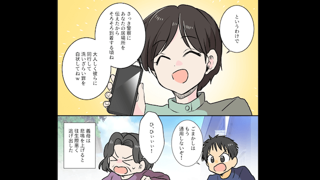しかし義母に軽蔑の感情しかない主人公夫婦は、迷うことなく警察に通報をしたのでした。