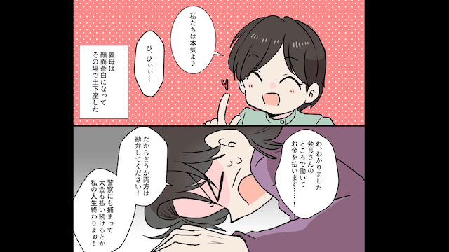 今回は『元義母「介護費の入金はまだかしら?」というので真実を伝えた結果』を紹介します。 主人公と会長は、逮捕か弁償かの2択を義母に迫りました。 さらに会長は「どちらも選ばないのなら両方にするしかなくなるだろうな」と義母に伝え…。