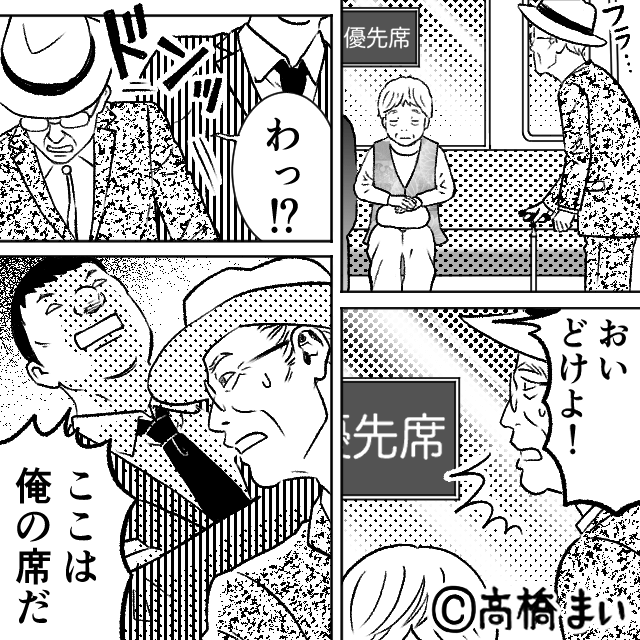 「俺の席だ!」老人を”押しのけて”優先席に座るおじさん。しかし⇒「やめなさい!」”現れた人物”に顔面蒼白!?