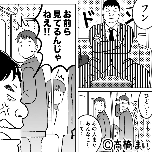 今回は『“ぶつかりおじさん”の末路』を紹介します。 通勤電車の中で、人にぶつかっては怒鳴る横柄な態度の男性を見かけた主人公。 男性は毎日周囲に迷惑をかけているようで、主人公は不安になり…。