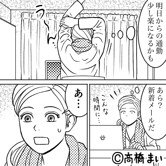 数日後、乗客が撮っていた動画がネットに流れ、大炎上しているのを見つけた主人公。 主人公は驚きつつも「明日からの通勤少し楽になるかも」と安心します。