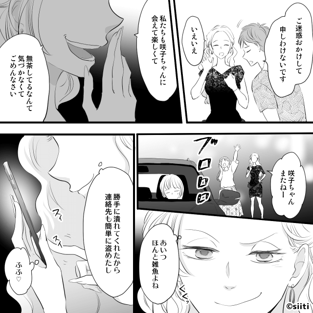 今回は『学生時代の“いじめっ子”が私を同窓会に誘った理由』を紹介します。 飲み過ぎてしまい、婚約者に迎えを頼もうとスマホを取り出した主人公。 すると同級生が「連絡してあげる〜」と主人公からスマホを奪い…。