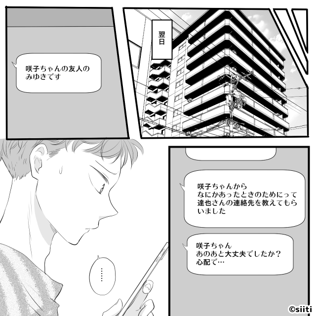 主人公からスマホを奪った同級生は婚約者の連絡先を盗み、翌日婚約者にメッセージを送ります。 そしてさらに翌日、主人公は婚約者と同級生がカフェで会っているのを見かけてしまうのでした。