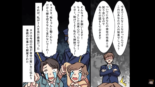今回は『私の婚約者を寝取った姉「彼の子ども妊娠しちゃった!」私「彼とは海外旅行中だけど?」⇒勘違いしていた姉の末路』を紹介します。 姉と婚約者の兄は、婚約者と主人公が兄の存在を公表できないことにつけこみ、会社を乗っ取ろうとしていました。 そして主人公が他の社員たちから嘘つき呼ばわりをされながらも、社長の席に座っているのが婚約者ではないと主張していると…。