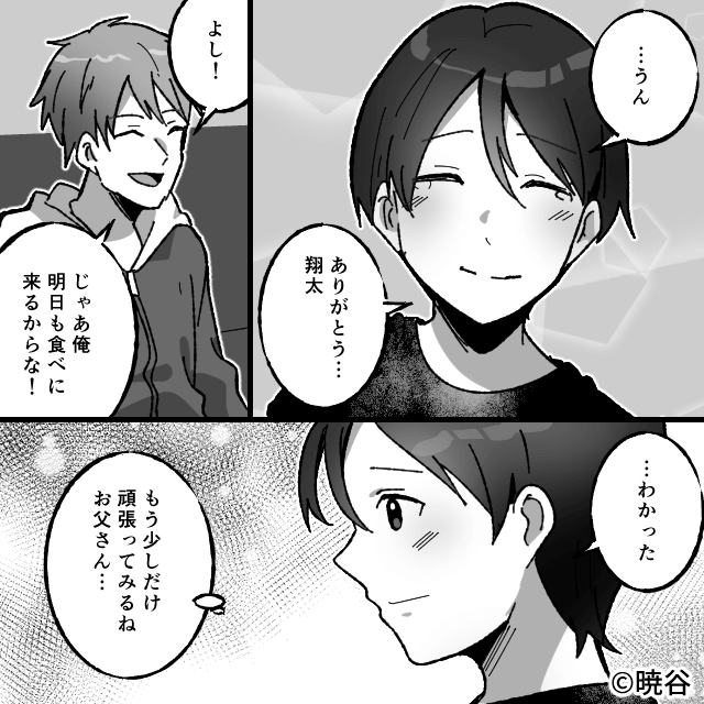 ラーメン作りを諦めようと主人公が思っていると、店に幼なじみがやってきます。 幼なじみは主人公の話を聞いて励ましてくれ、主人公はもう少しだけ頑張ってみることにしたのでした。