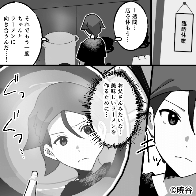 そして主人公は店を1週間休み、ラーメンと向き合うことにしたのでした。