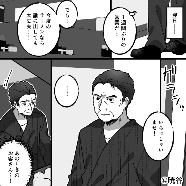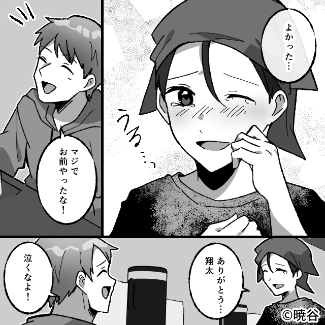 心を込めてラーメンを作り、幼なじみに食べてもらった主人公。 幼なじみは「このラーメン最高においしい!」と言ってくれ、主人公は喜びの涙を流します。