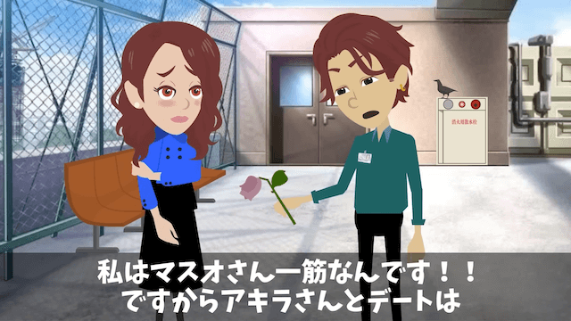 自分にも可能性があるかもしれないと思い、女性社員をデートに誘った先輩。 しかしデートを断られた挙句、女性社員の好きな人が主人公だと判明します。