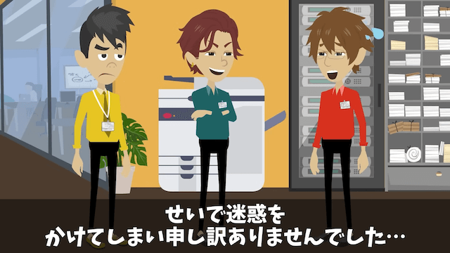 「これは責任を取らないといけないんじゃないのか?」と主人公に自主退職を勧めてきた先輩。 主人公はショックを受けるものの解決するには退職するしかなく、自主退職を決意したのでした。