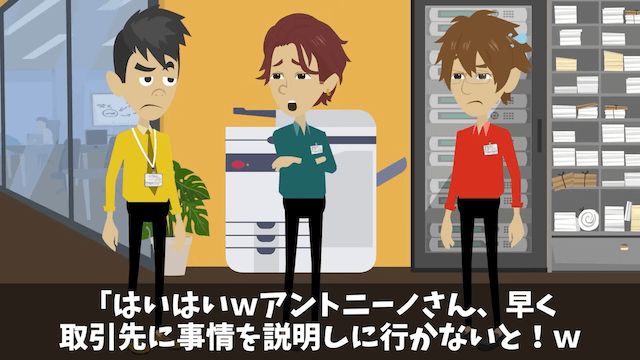 今回は『元同僚「200名の社員旅行キャンセルで!」「お前を除いた199名宿泊中だけど...」⇒勘違いしていた元同僚の末路』を紹介します。 発注ミスで大きな損失が出てしまい、先輩に自主退職を勧められた主人公。 主人公は身に覚えがなかったものの渋々退職を決意し、担当者である男性社員に謝罪したのでした。