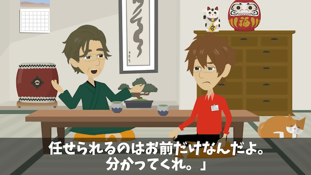 今回は『元同僚「200名の社員旅行キャンセルで!」「お前を除いた199名宿泊中だけど...」⇒勘違いしていた元同僚の末路』を紹介します。 いずれは両親の旅館を継ぐと約束をしていた主人公。 それでも会社で努力し続ける主人公に、父は「部長クラスになれるなんて本当に思っているのか?」と聞き…。