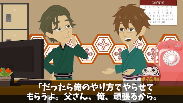 今回は『元同僚「200名の社員旅行キャンセルで!」「お前を除いた199名宿泊中だけど...」⇒勘違いしていた元同僚の末路』を紹介します。 旅館を継ぐことになり、父に「この旅館、立て直すから」と宣言した主人公。 驚く父に、主人公は「俺しかこの旅館を任せられる人間はいないんだよね?」と言い…。