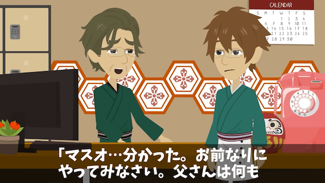 今回は『元同僚「200名の社員旅行キャンセルで!」「お前を除いた199名宿泊中だけど...」⇒勘違いしていた元同僚の末路』を紹介します。 旅館を継ぐことになり、父に「この旅館、立て直すから」と宣言した主人公。 驚く父に、主人公は「俺しかこの旅館を任せられる人間はいないんだよね?」と言い…。