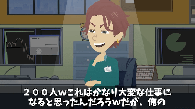 今回は『元同僚「200名の社員旅行キャンセルで!」「お前を除いた199名宿泊中だけど...」⇒勘違いしていた元同僚の末路』を紹介します。 先輩に200人の社員旅行の予約を強引に入れられ、人数の多さに戸惑う主人公。 しかし予約された以上は頑張るしかなく、主人公は気合いを入れるのでした。