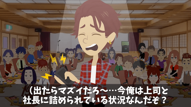 先輩が社長と上司に責められている最中、先輩のスマホの着信音が鳴り響きました。 高級ホテルからの電話だとわかった先輩が焦っていると、上司が「出なくていいのか?」と言ってきて…。