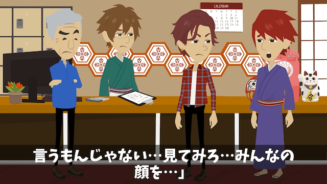 プライドが高い先輩は主人公に負けたことが相当悔しかったようで、大声で主人公に怒鳴ります。 しかし上司に「見てみろ…みんなの顔を」と言われて周囲を見渡した先輩は、途端に恥ずかしくなりました。
