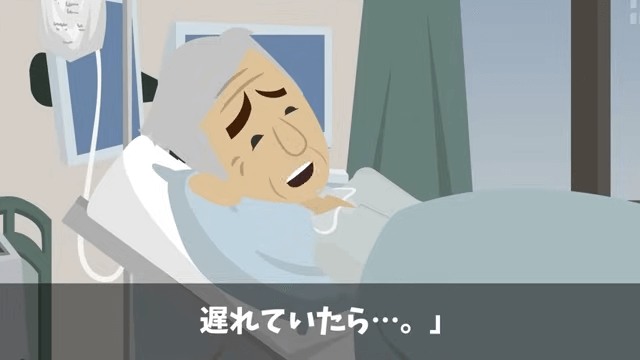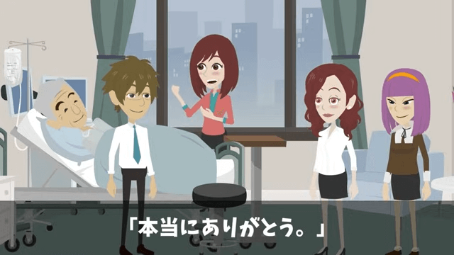 今回は『課長「義父の入院くらいで仕事を休むな!」俺「本当にいいの?」⇒義父の正体を明かした結果』を紹介します。 義父の容体は安定したものの、脳の働きに影響が出ている可能性があるため、今後も経過観察が必要とのことでした。 そして義父は、主人公のおかげでここまで回復することができたと話し…。