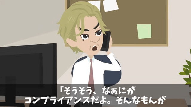 今回は『課長「義父の入院くらいで仕事を休むな!」俺「本当にいいの?」⇒義父の正体を明かした結果』を紹介します。 コンプライアンス室の室長である義姉は、今後の処分を明確にするため、通話内容を録音していることを課長たちに説明しました。 そして電話を代わったもう1人の義姉は、自分がグループ全体の社長であることを課長たちに伝えたのです。